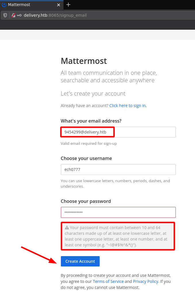 here we are hinted towards the domain name helpdesk.delivery.htb so let's add both the domain name and the subdomain to our hosts file: