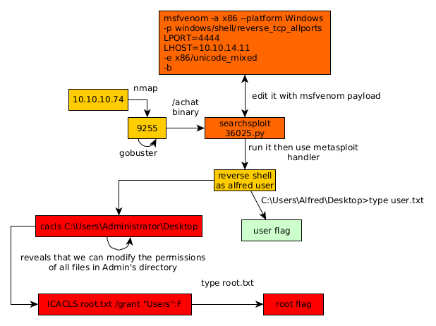 As expected we can't print out the Administrator's root flag. so we check the permissions since it is quite odd to be able to navigate into his folder as the user alfred: