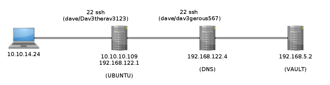 This will allow us to use our localhost (127.0.0.1)'s 1234 port to access our final destination(192.168.5.2)'s 987 port from our current machine (192.168.122.4)'s 53 port. To which we will ssh using the same credentials as we used for 192.168.122.4 (dave/dav3gerous567) :