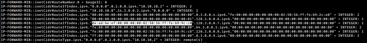 now that we commented the line we wanted in the config, we can snmp walk again but this time getting the actual ipv6 in HEX format we want.