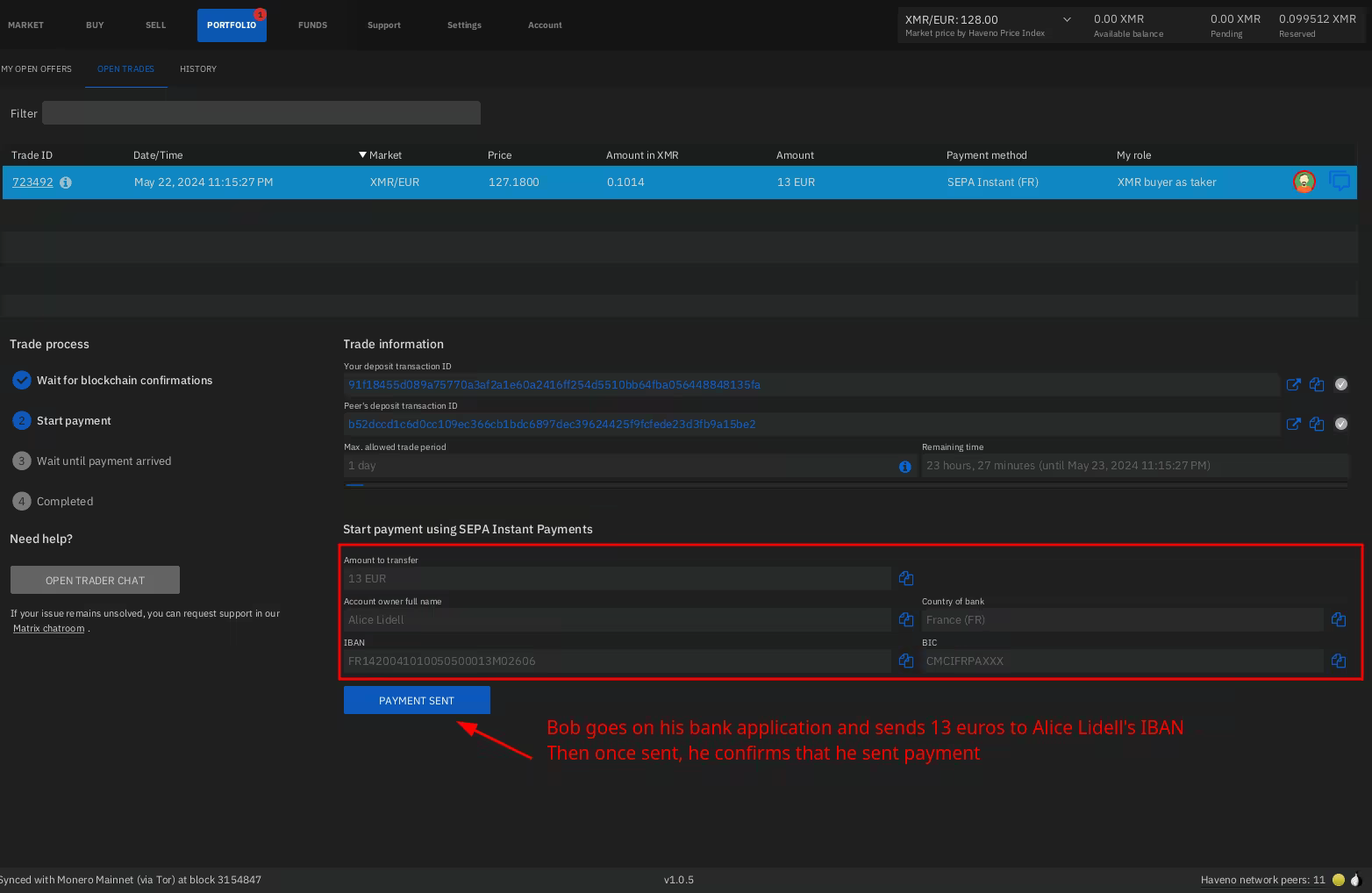 Haveno DEX Bank Transfer (ex: SEPA) -> XMR transaction