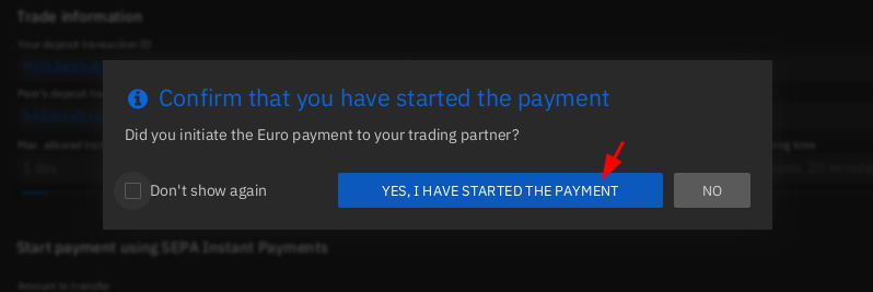Once completed, Bob declares that he has sent payment. and in case if Alice tries to deny that she received payment, Bob can take a screenshot to prove that he has sent the payment, from his bank account by clicking on viewing more details on his transaction (checking the receipt). That way, in case if there is a dispute, (meaning if Alice tries to scam Bob), he will be on the right side of arbitration, and the Arbitrator will favor him.