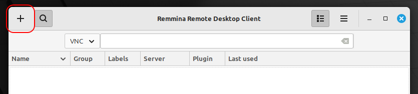 Still on our client machine, we open Remmina and add a VNC connection, this time at port 3309 and with no user/password. You can also set the depth to 16 to match our server (which we'll setup later).