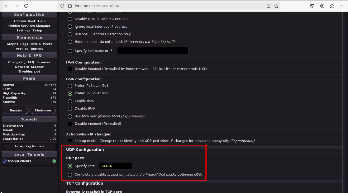 As you can see, my network status is Firewalled. I2P should work just fine behind firewalls, however to get faster speeds and better tunnels, we can open UDP port on your firewall.