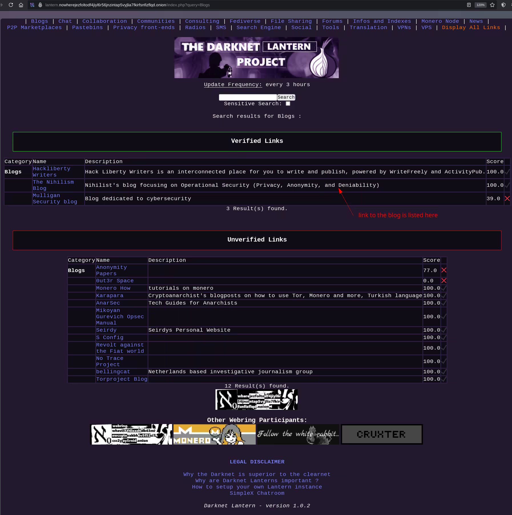 And then to make sure the Opsec Bible remains resistant to takedowns, you can list it on your own Darknet Lantern instance, under the Blogs category: