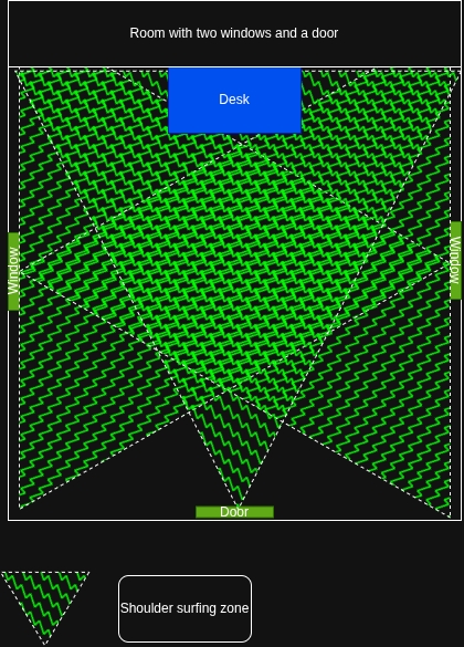As you can see, shoulder surfing zones can be quite large in many situations, and the risk becomes even greater if you leave your device unlocked and unattended. In that case, the entire room effectively becomes a shoulder surfing zone. Remember that you cannot rely on anyone else to protect your sensitive activities. Even when people have no malicious intent, they can make mistakes that lead to exposure. For example, if a family member enters a room where you left your device unlocked and records a video of themselves to post on social media, your screen activity could be captured as well and uploaded online.