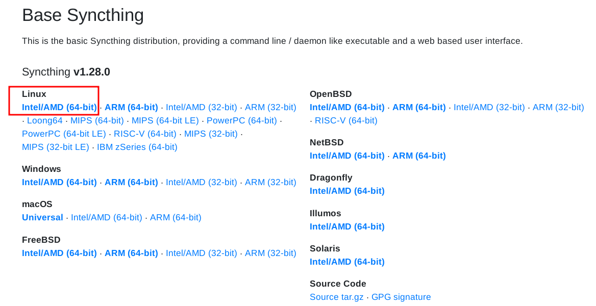$ tar xvf syncthing-linux-amd64-v1.28.0.tar.gz