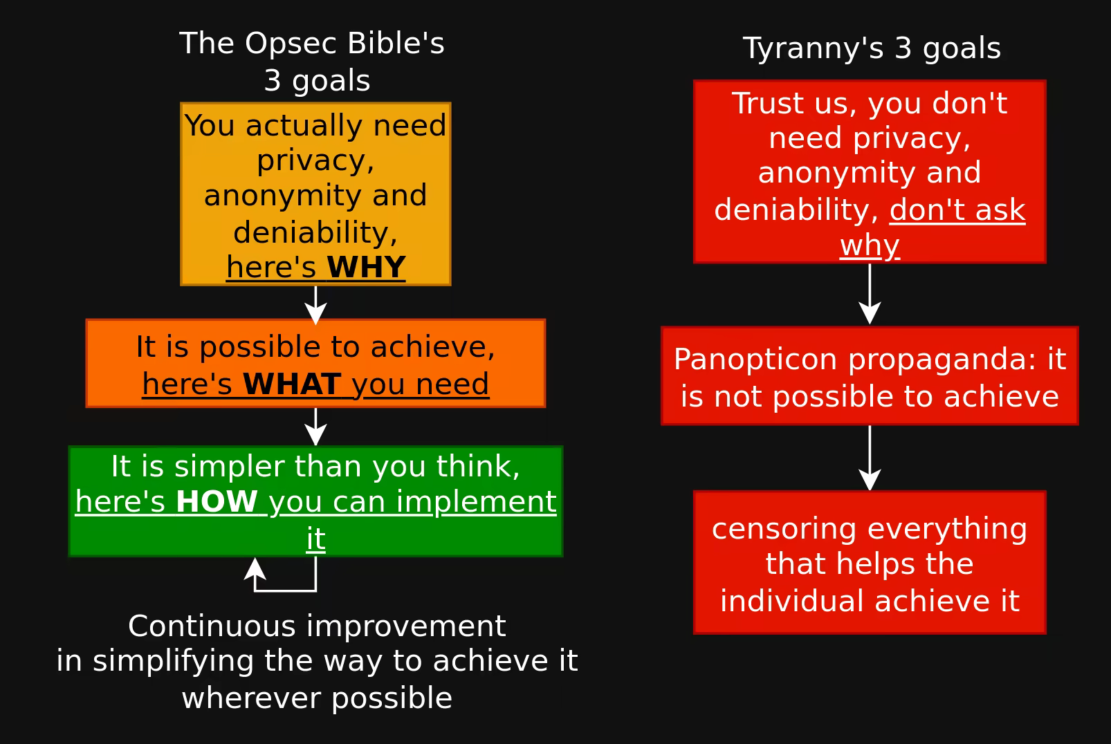 This mountain of work that explaining operational security is, cannot be summarized in 1 afternoon, in a 4 hour effort post. This is a multiple thousand-hour effort, to effectively plan it out, list all the blogposts to explain all the concepts, all of the topics to be explored, to actually explore them, rewrite them whenever valid criticism gets thrown at it, on and on and on it goes. AND you have to apply a quality standard on ALL posts, to make sure that you effectively convey your knowledge to your audience properly.