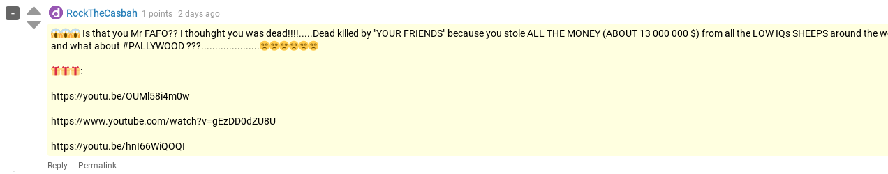 Even worse, Law enforcement can search Dread for all account sharing the YouTube link with the same source identity. They now know that all these accounts belong to the same identity.